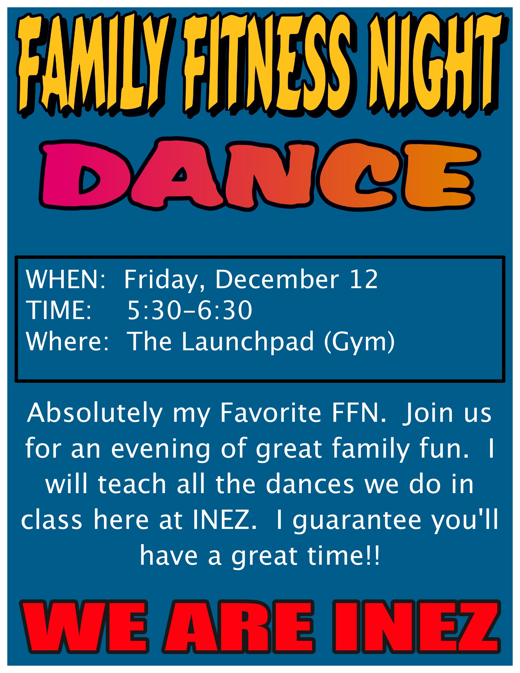 Events Fitness/Activity DANCE!! December 5, 2014 Share this: Click to share on X (Opens in new window) X Click to share on Facebook (Opens in new window) Facebook Like Loading... Related Post navigation ← YEEESSSS!! Remember This!! → About inezpe View all posts by inezpe → Leave a comment Cancel replyBasic HTML allowed. Δ