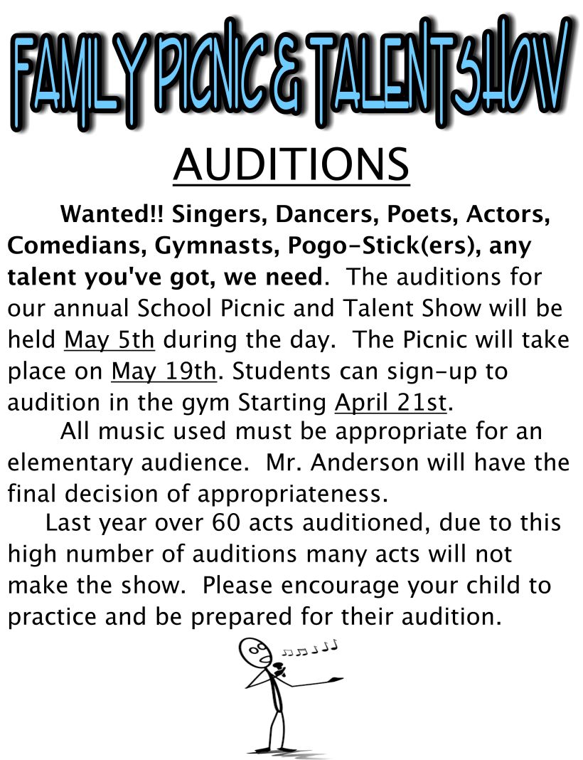 Events Uncategorized Auditions April 13, 2017 Share this: Share on X (Opens in new window) X Share on Facebook (Opens in new window) Facebook Like Loading... Related Post navigation ← TALENT SHOW/PICNIC Moved → About inezpe View all posts by inezpe → Leave a comment Cancel replyBasic HTML allowed. Δ