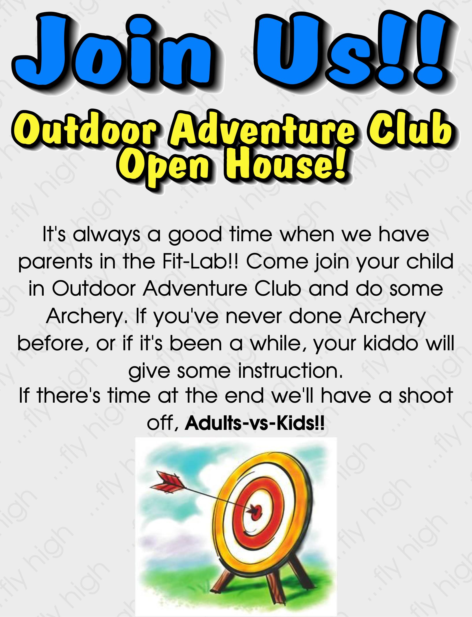 Events Rocket Hour Open House November 14, 2022 Join us in Outdoor Adventure club this Friday from 2:45-3:45 in the gym!! Share this: Click to share on X (Opens in new window) X Click to share on Facebook (Opens in new window) Facebook Like Loading... Related Post navigation ← Circuit Training!! FAMILY FITNESS NIGHT (DANCE!!) → About inezpe View all posts by inezpe → Leave a comment Cancel replyBasic HTML allowed. Δ
