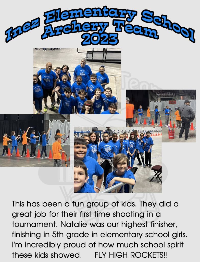 Events Inez Archery Team 2023 March 14, 2023 Share this: Click to share on X (Opens in new window) X Click to share on Facebook (Opens in new window) Facebook Like Loading... Related Post navigation ← FAMILY FITNESS NIGHT (DANCE!!) Wish Us Luck!! → About inezpe View all posts by inezpe → Leave a comment Cancel replyBasic HTML allowed. Δ
